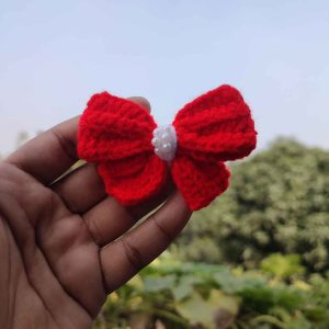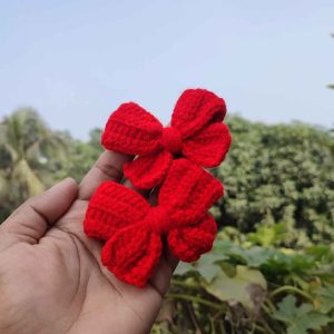 কোডঃ BS06; Handmade Crochet Red Bow Hair Clips