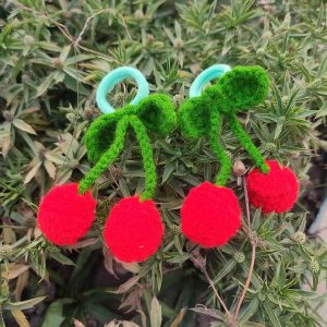 কোডঃ CHR40; Handmade Crochet Cherry Hair Band/Rubber (1 Pair)