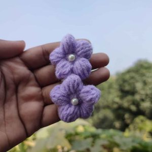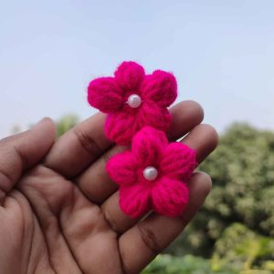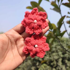 কোডঃ TFC37; Handmade Crochet Tulip Flower Hair Clips (1 Pair)