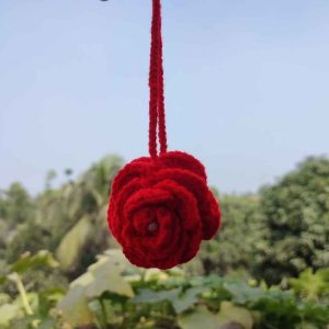 কোডঃ RK25; Handmade Crochet Red Rose Key Ring