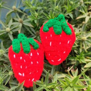 কোডঃ SB13; Handmade Crochet Strawberry Hair Clips (1 Pair)