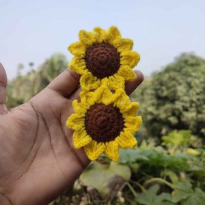 কোডঃ SFB09; Handmade Crochet Sunflower Hair Bands (1 Pair)