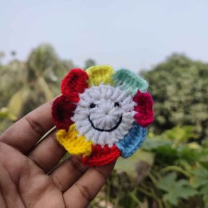 কোডঃ SR28; Handmade Crochet Rainbow Smile Flower Hair Band/Rubber (1 Piece)
