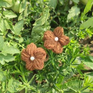 কোডঃ SS21; Handmade Crochet Pearl Flower Hair Band/Rubber (1 Pair)