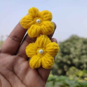 কোডঃ PFC38; Handmade Crochet Yellow Petal Flower Hair Clip (1 Piece)