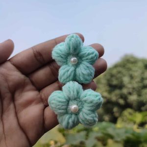 কোডঃ SS24; Handmade Crochet Pearl Flower Hair Band/Rubber (1 Pair)