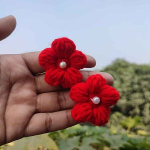 কোডঃ SFK33; Handmade Crochet Red Blossom Kakra Band/Punch Clip