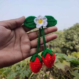 কোডঃ TWM14; Handmade Crochet Strawberry Dangle Hair Band/Rubber (1 Piece)