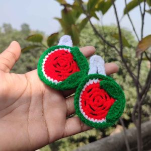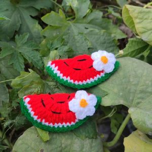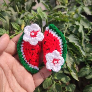 কোডঃ WM02; Handmade Crochet Watermelon Hair Clips (1 Pair)